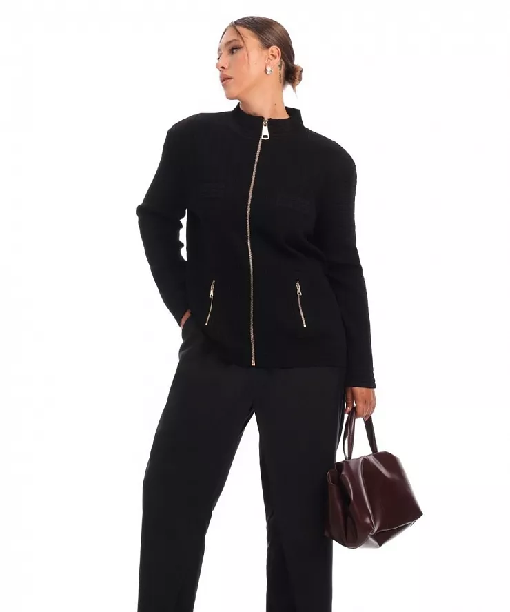 Жакет из плотного трикотажа с воротником стойка и молниями