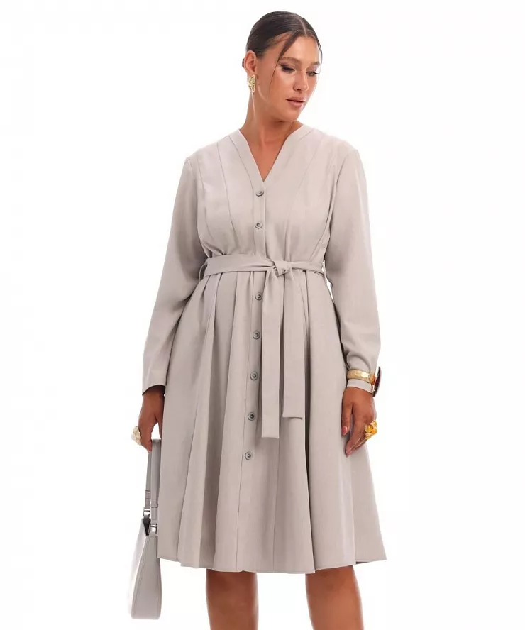 Платье из костюмной ткани на пуговицах с расклешенной юбкой