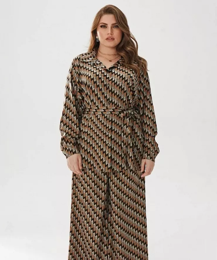 Брючный костюм с геометрическим принтом в бельевом стиле
