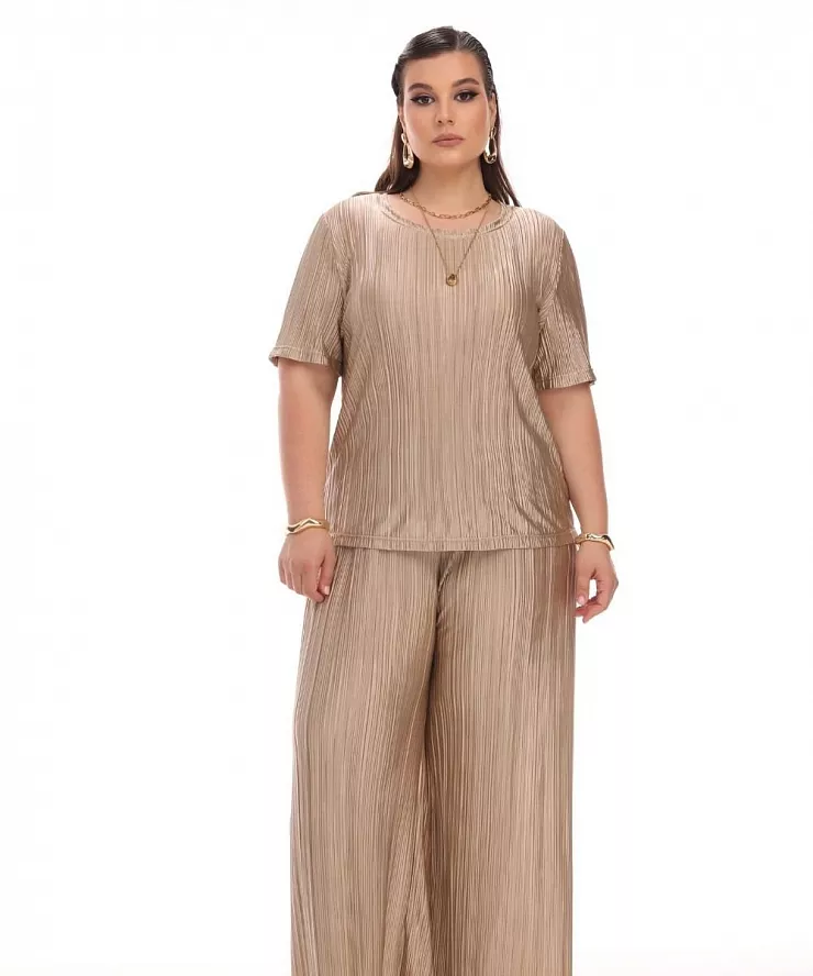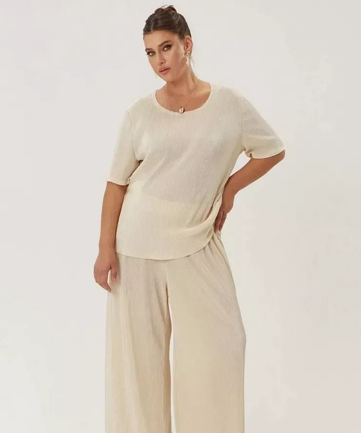 Бежевый тишот с мелкой гофрировкой