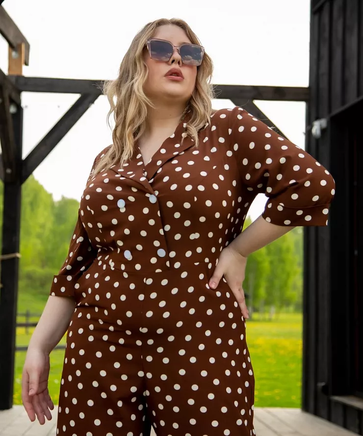 Коричневый комбинезон с декоративными пуговицами и принтом горох