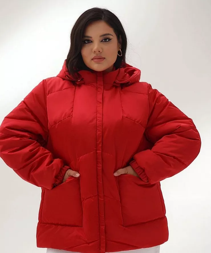 Красная куртка пуховик из водонепроницаемой ткани
