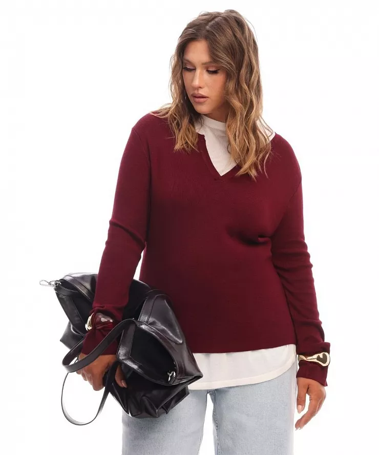 Бордовый двуслойный комбинированный джемпер из вискозы