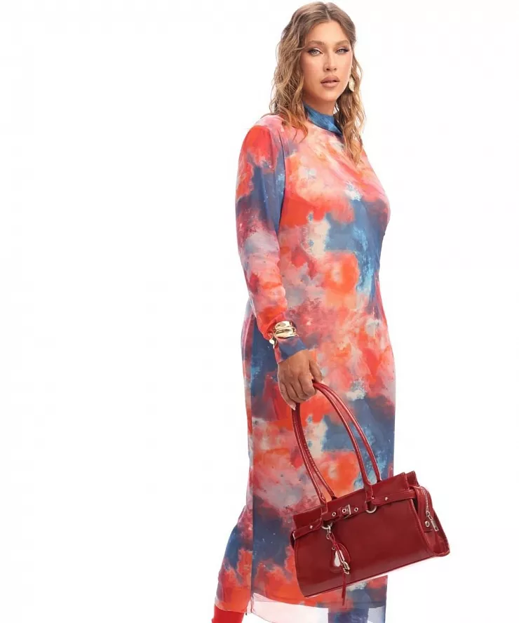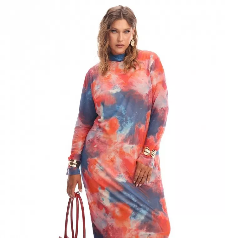 Платье из сетки на подкладки с принтом