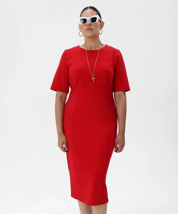 Красное платье футляр со шлицей из джерси