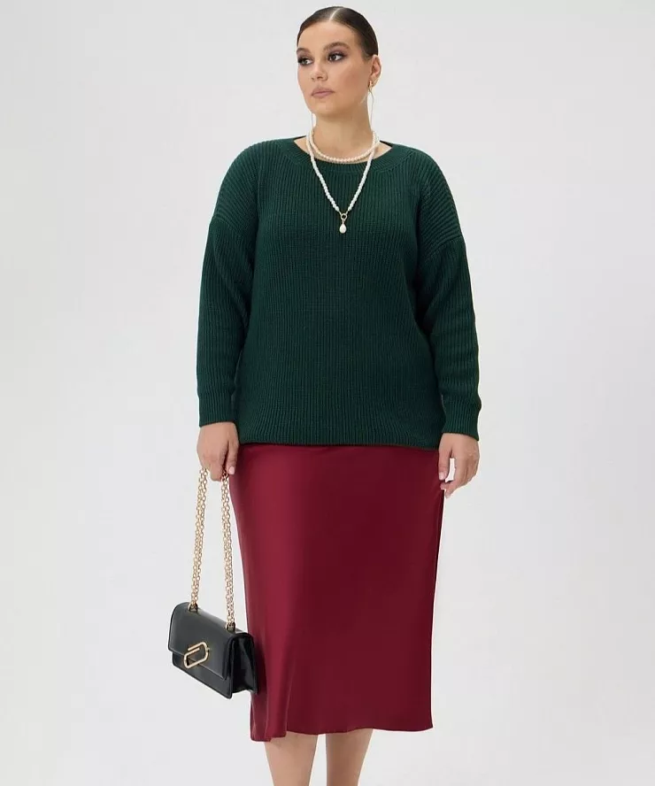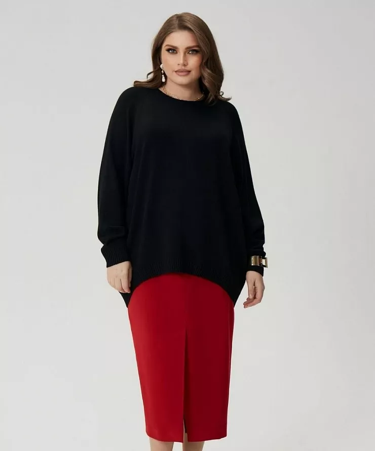 Кэжуальный образ: Джемпер и красная прямая юбка миди — классика в простом исполнении.