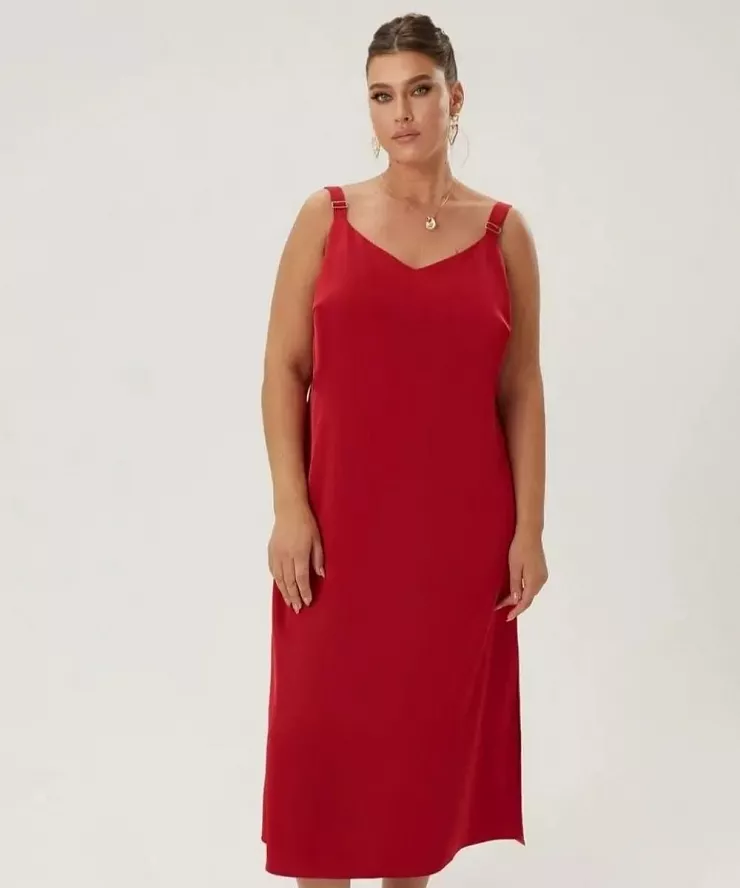 Красное платье слип из вискозного шелка