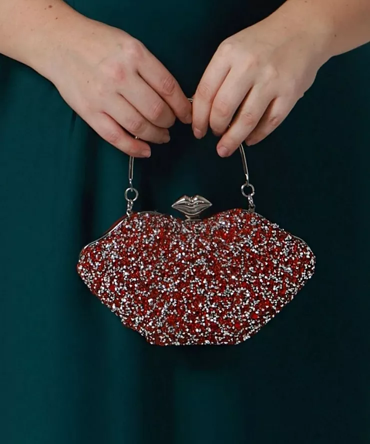 Красная сумка клатч в виде губ с блестками
