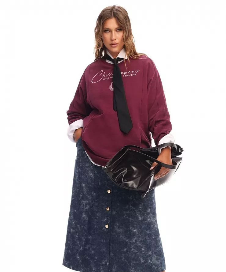 Неотъемлемая часть гардероба — трикотаж. Свитеры, лонгсливы, джемперы в винных и даже фиолетовых оттенках хороши тем, что гармонично смотрятся в сочетании с классикой, денимом, теплыми и холодными оттенками.
