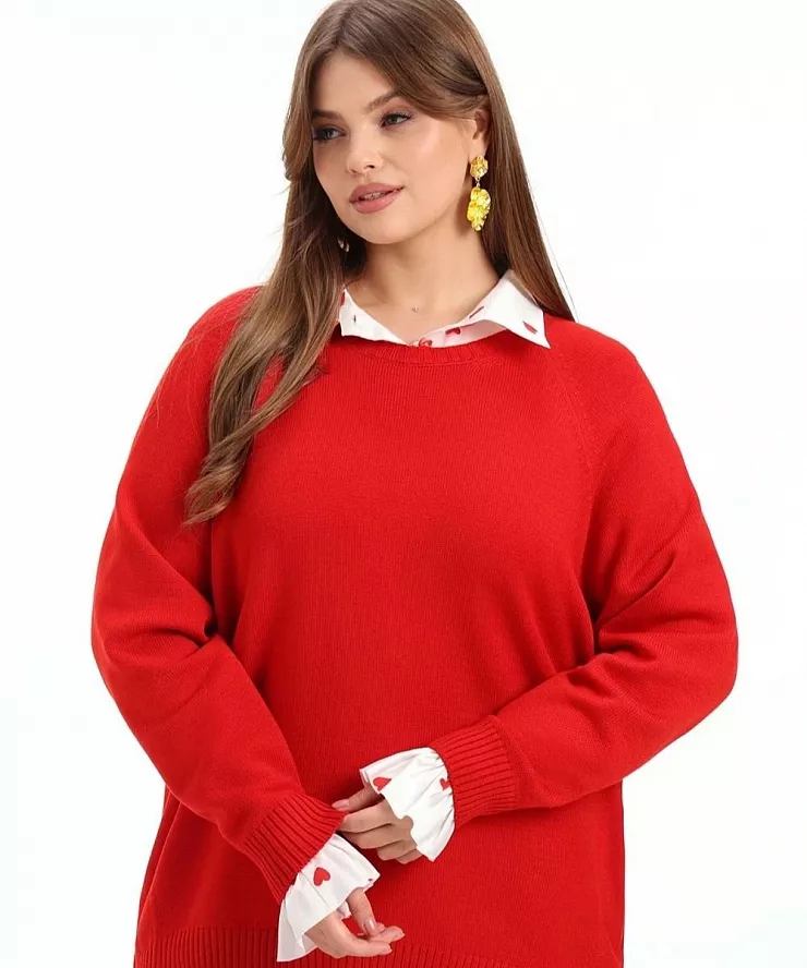 Красный джемпер из смесовой вискозы с круглым вырезом