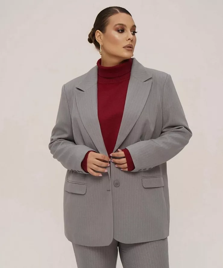 Деловой образ: Серый костюм с бадлоном винного оттенка — уверенный и стильный выбор для офиса.