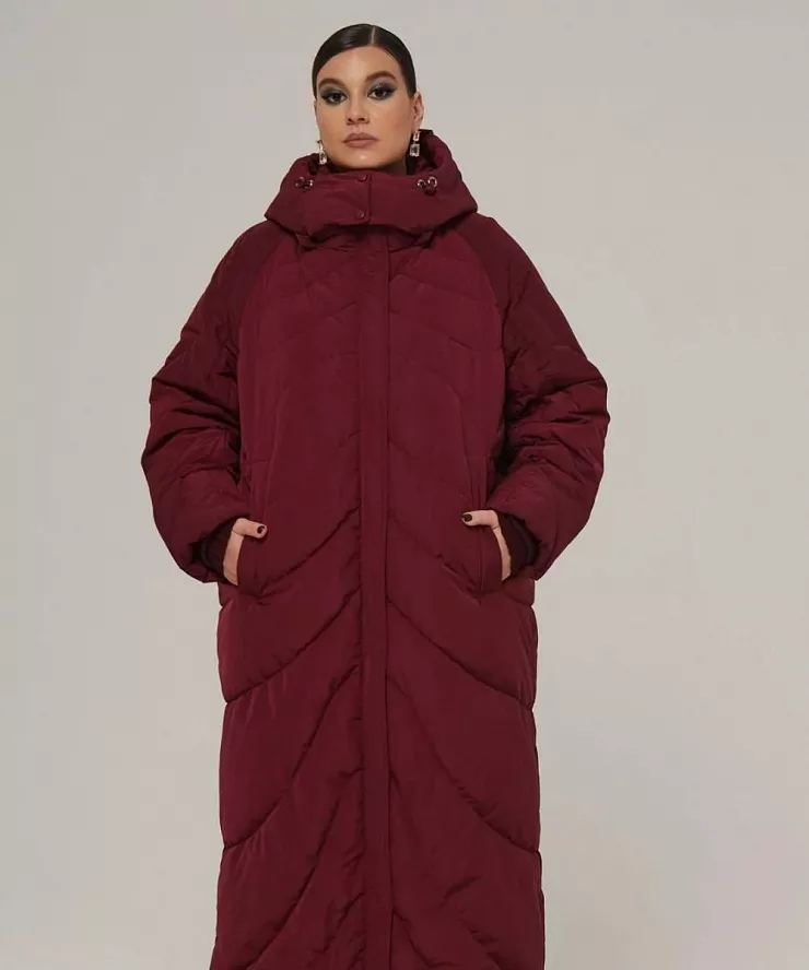 Прямой пуховик макси из ткани с защитной пропиткой и капюшоном