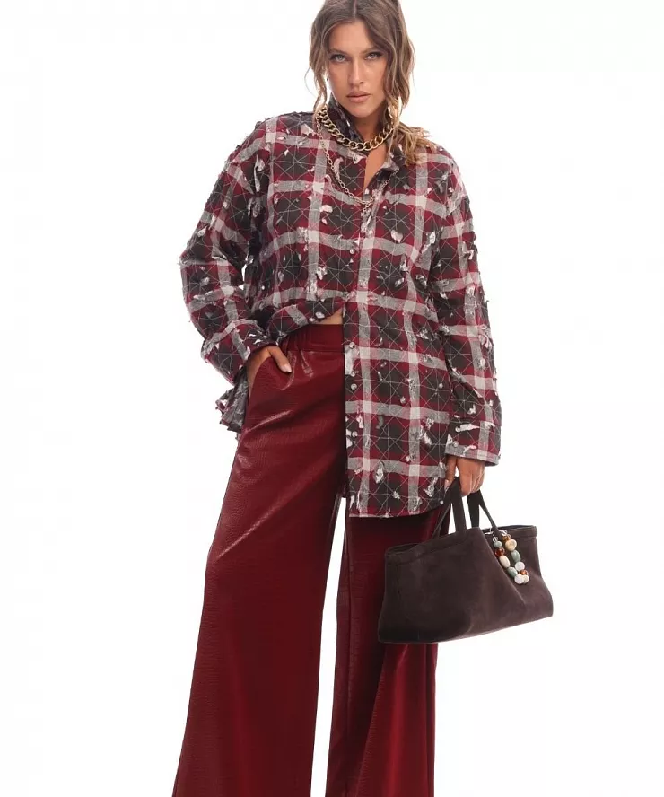 Широкие брюки из тисненной экокожи