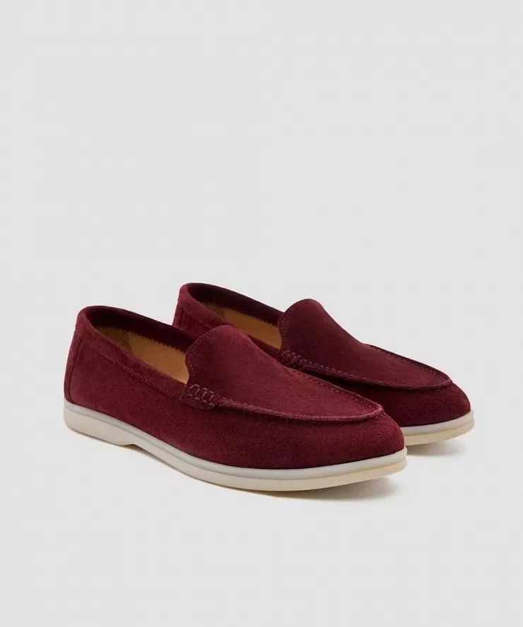 Бордовые замшевые венецианские лоферы с увеличенной полнотой
