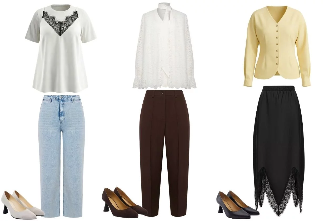 20–30 лет: джинсы + белая футболка + кружевной топ. Носите его с грубыми ботинками и кожаной курткой — это убирает излишнюю сладость. Или надевайте кружевной топ под строгий костюм. Игра контрастов — ваш билет во взрослую осознанную жизнь.