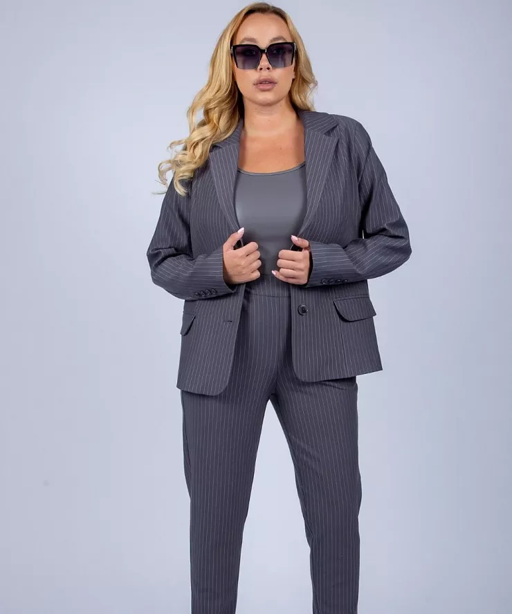 Топ из экокожи будет просто невероятно смотреться с брюками и жакетом одного цвета и принта. Поверьте, в офисе все просто с ума сойдут от вашей красоты!