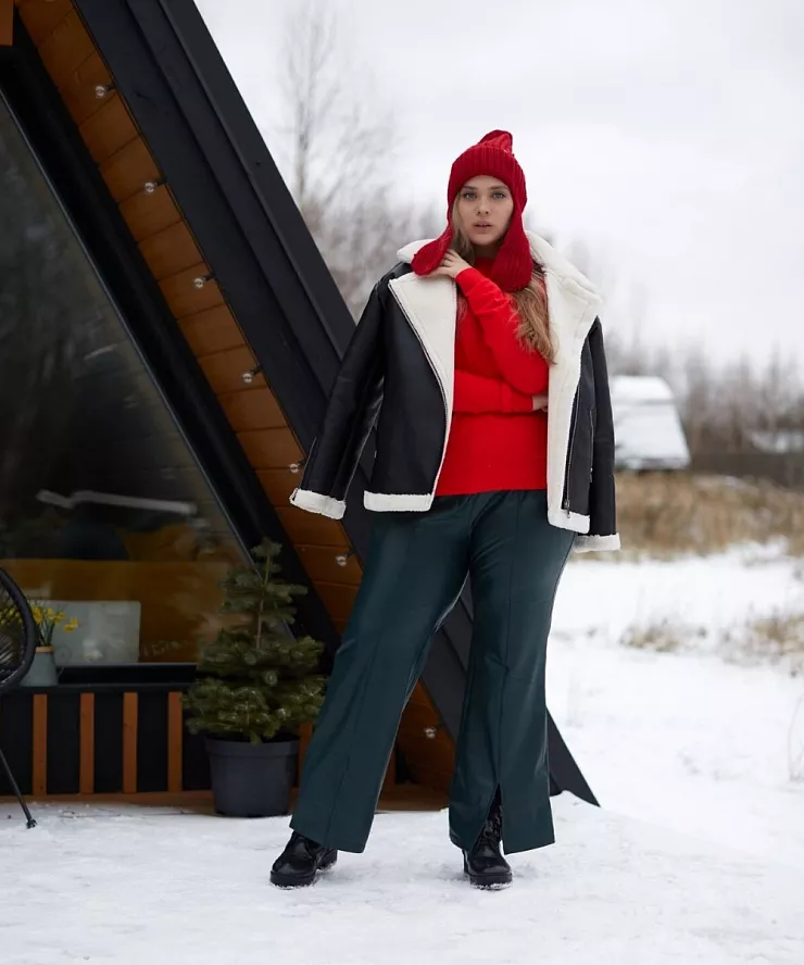 Идеальное сочетание для осени. Наши юбки, брюки и платья из экокожи имеют тканевый подклад, что обеспечивает дополнительный комфорт и тепло. А надев сверху вязаный свитер или трикотажный джемпер, вы сделаете свой образ ещё более тёплым и уютным. Так же обратите внимание на образы для зимы: дубленки и экошубы отлично дополнят любой ваш лук!