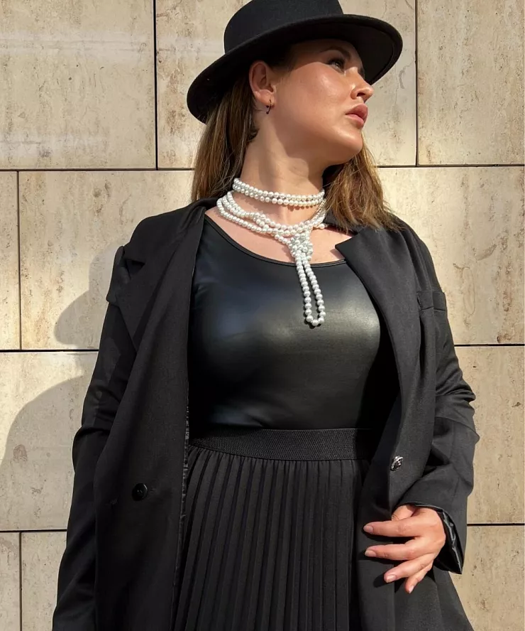 Есть мнение, что носить кожу могут только самые смелые и худые. Некоторые боятся этой текстуры, хотя очень зря. Современная экокожа прекрасно сочетается с вещами из хлопка, трикотажа, атласа, шелка, кашемира и других. Более того, сейчас экокожа максимально комфортная: дышит, отлично подстраивается под изгибы тела, не трескается и служит очень долго.