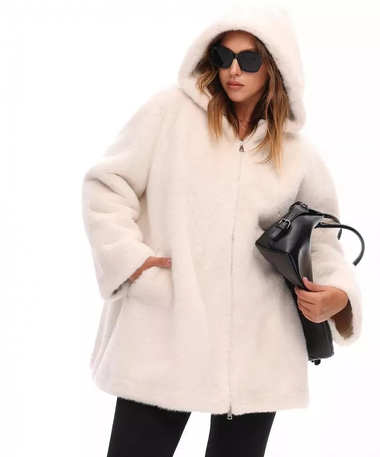 Мини-шубы с капюшоном — неожиданный хит! Легкие, игривые, с объемным капюшоном, который можно надеть как «шлем будущего». Особенно популярны у поколения Z.