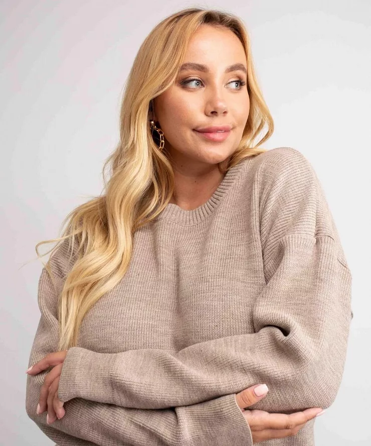 Если в вашей компании нет строгого дресс-кода, то такой образ тоже будет отличным вариантом. Он довольно расслабленный, но при этом удобный и, что немаловажно осенью, очень теплый. Свитер яркого цвета (например, красного) задаст настроение на весь день, а коллеги точно не раз скажут, как вы сегодня круто выглядите!