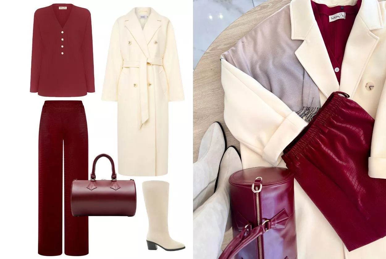 Пальто — это обязательный атрибут осенне-зимнего гардероба. Вы можете сочетать его с джемпером и брюками из экокожи для создания стильного и современного образа. Самый шик этого микса — сочетание молочного и винного — как набухшие на ветке ягоды, тронутые заморозками, и сливочное мороженое в пиале. Пальто и теплые аксессуары будет отличным вариантом для холодной погоды.