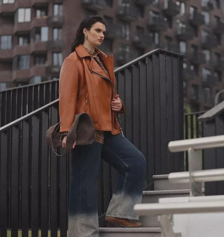 Через пару недель наступит осень, и как бы нам ни хотелось, погода начнет меняться на более ветреную и прохладную. Дополнить образ и не замерзнуть поможет стильная косуха в байкерском стиле. Расслабленный и немного «ковбойский» лук с джинсами, рубашкой и курткой – беспроигрышный вариант на каждый день. Дополняйте аутфит аксессуарами в виде шляпы, банданы, браслетов, казаков, чтобы ваш силуэт хотелось рассмотреть и повторить!