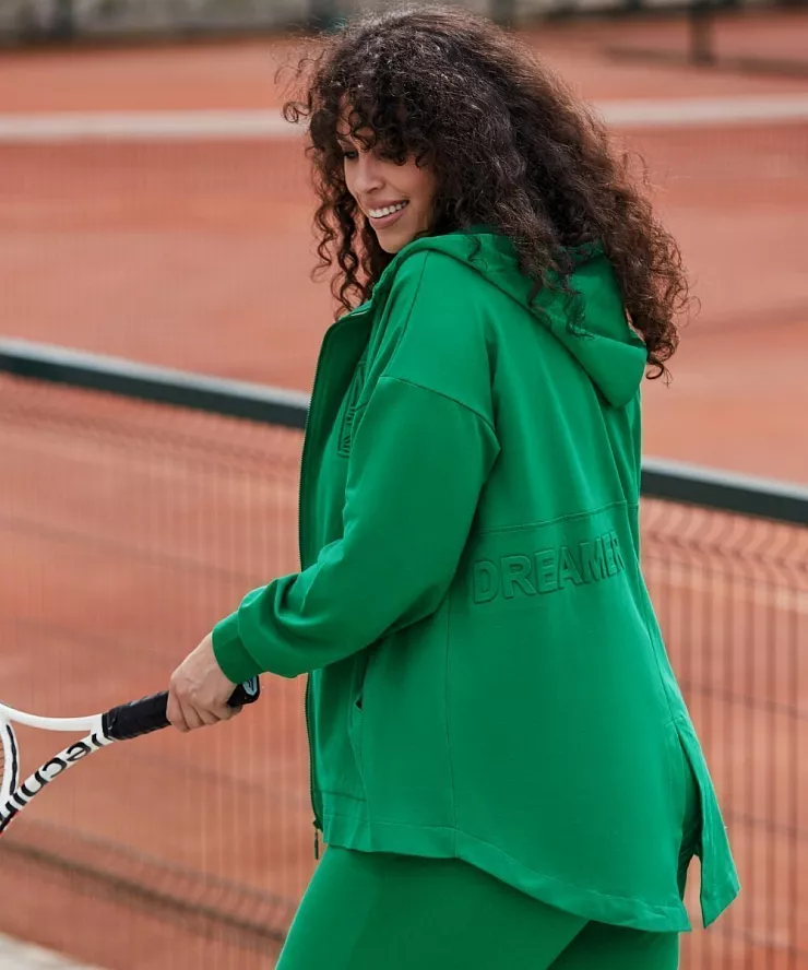 Спортивная трикотажная куртка на молнии давно вошла в обиход одежды спортсменов, которые принимали участие в олимпиаде. Мы решили продемонстрировать наши брендированные олимпийки, чтобы у каждой из вас была возможность почувствовать себя настоящей чемпионкой! Создавайте спортивные аутфиты с олимпийкой и джоггерами или дополняйте образы с платьями и денимом.