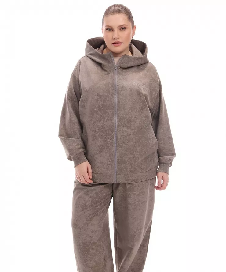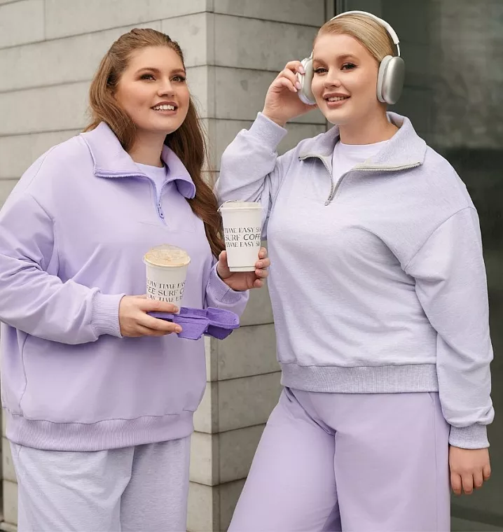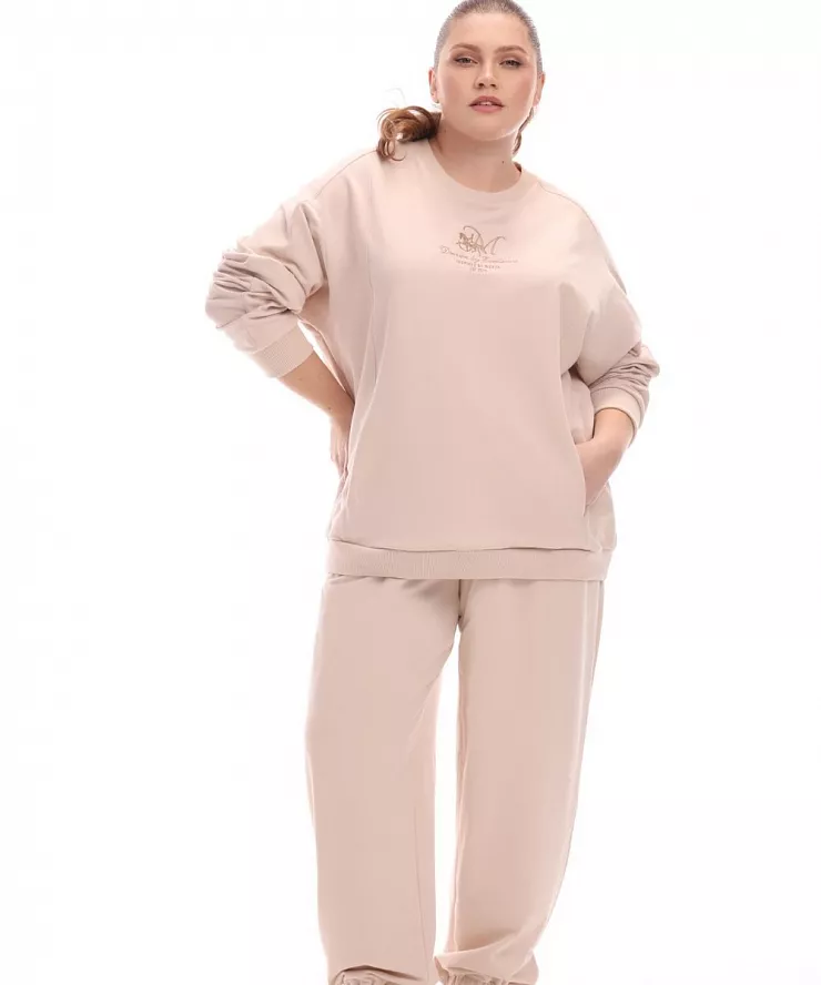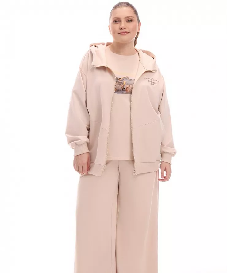 Одно из главных достояний коллекции – костюмы-трансформеры. Это возможность заменить одну вещь другой, без ущерба стилю и собственным ощущениям. Так, у бежевого костюма есть альтернатива верха (свитшот и худи на замке) и низа (палаццо и джоггеры). Таким образом вы можете составить любой образ, отвечающий вашим запросам. А вот костюм капучино можно носить в сочетании с шортами-боксерами или джоггерами. Нужно лишь выбрать любимый оттенок – беж, небесно-голубой, сирень, капучино – и миксовать, как ваша фантазия решит.