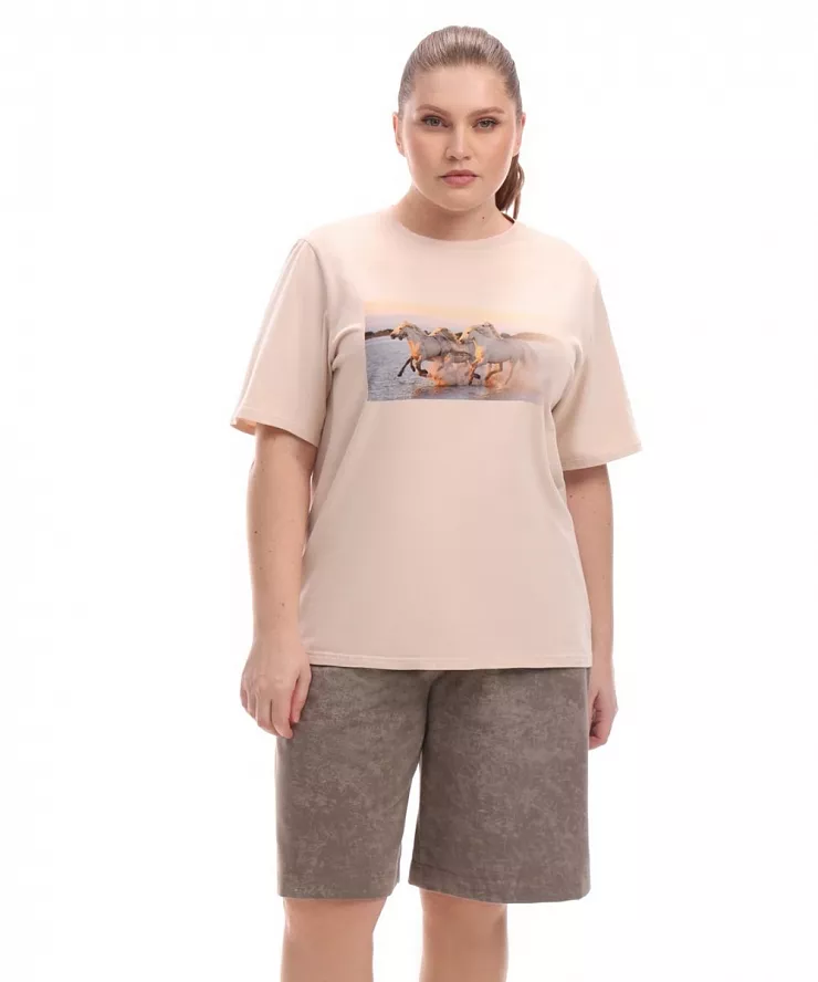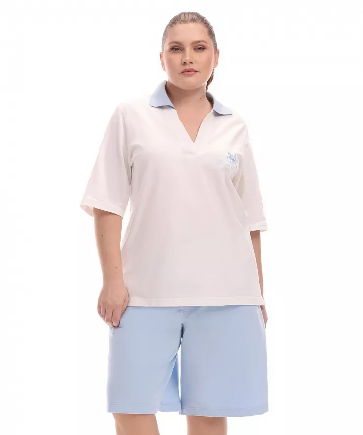 Нежный 100% хлопок – то, что нужно женщинам размера плюс. Благодаря натуральной ткани тело может «дышать», дарить удобство и комфорт. Наши новые футболки и поло – ваш вклад в качественный базовый гардероб. Футболки великолепно вписываются в спортивную капсулу и будут здорово смотреться с вещами из денима, юбками, брюками.