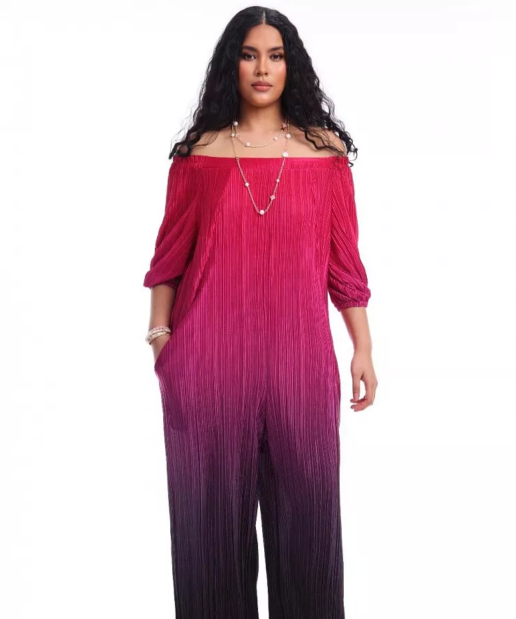 Комбинезон в мелкую гофрировку с градиентным принтом