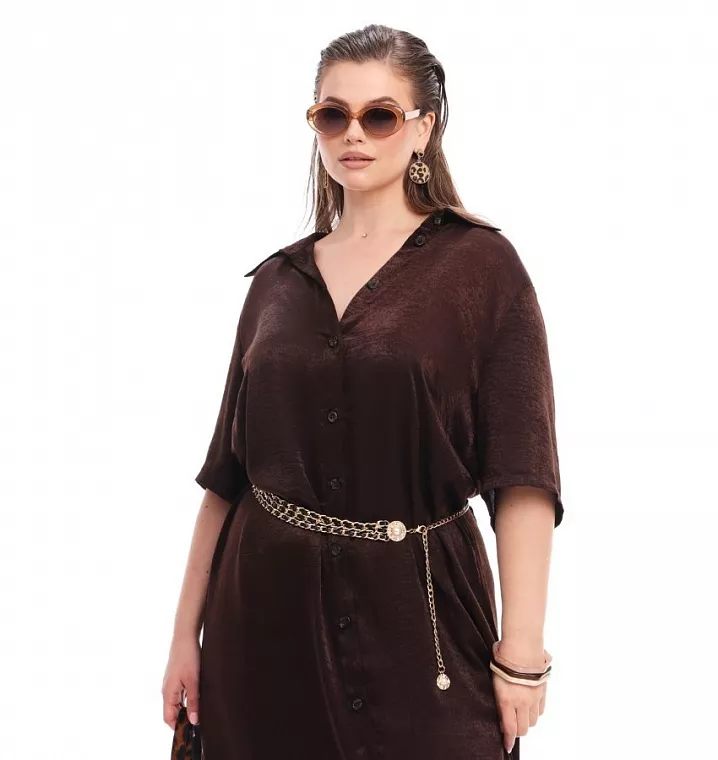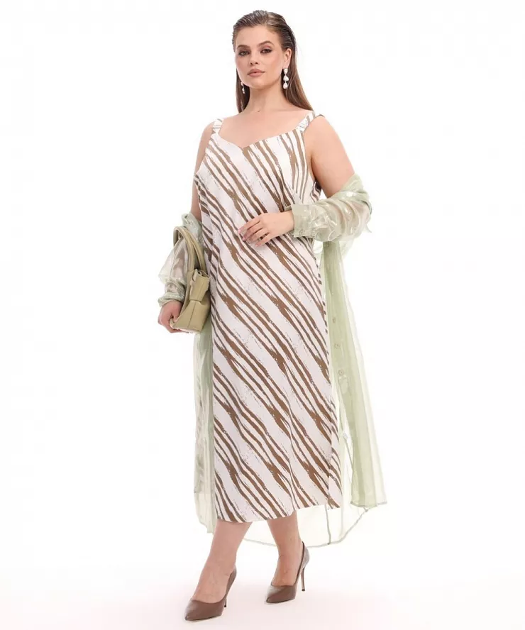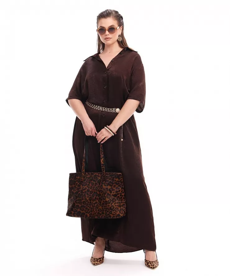 Однослойное платье слинки с коричневым принтом и краш эффектом