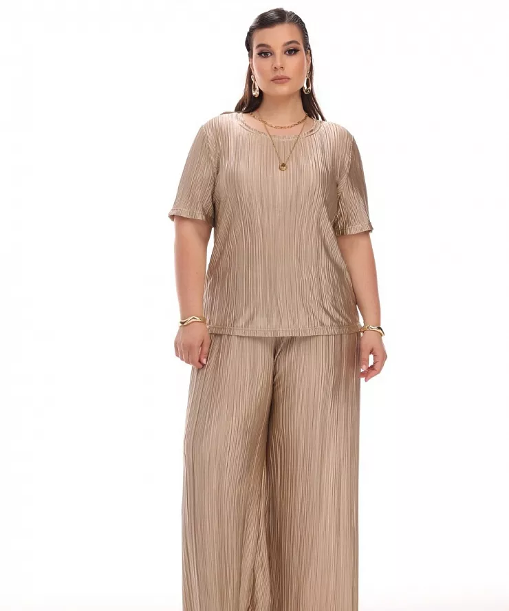 Палаццо из ткани в мелкую гофрировку бежевого цвета