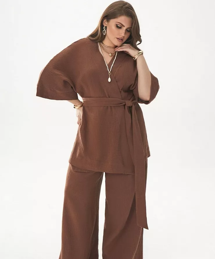 Палаццо из тенселя темно-бежевого цвета на подкладке