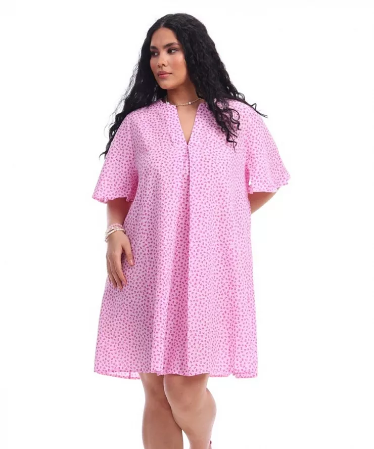 Платье бэби долл из ткани с краш эффектом и розовым принтом
