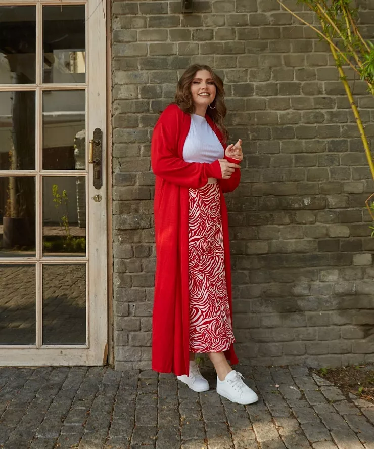 Красный вязаный трикотажный оверсайз кардиган без застежки