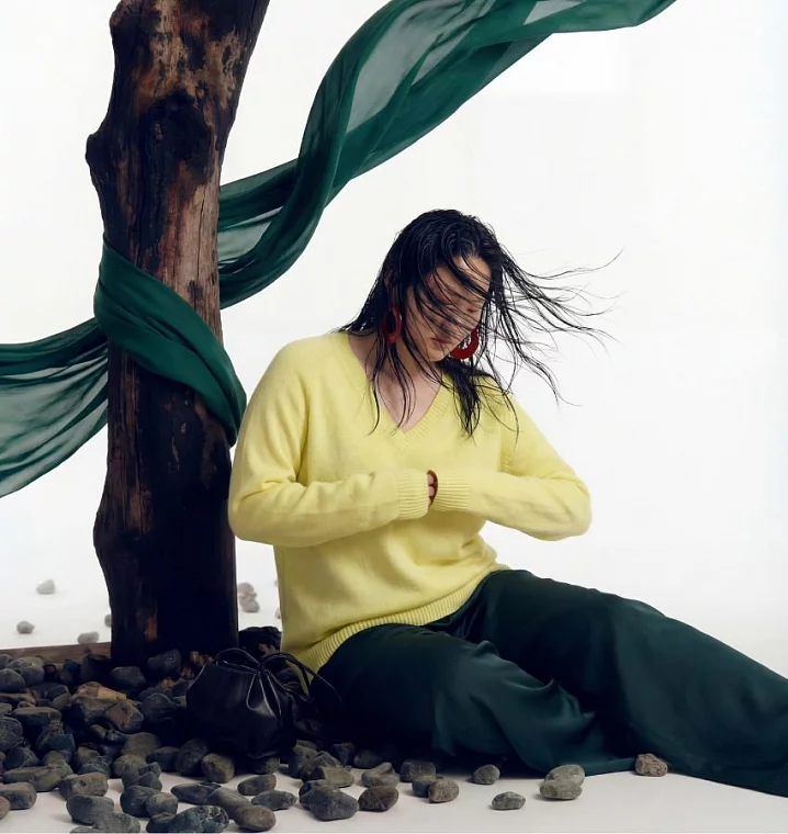 Растительные мотивы с объемными цветами — это прямая отсылка к первым листьям, пробивающимся сквозь сухую землю и цветам, которые тянутся к солнцу. А яркий джемпер в изумрудном оттенке — акцент, который информирует о свободе своей обладательницы.