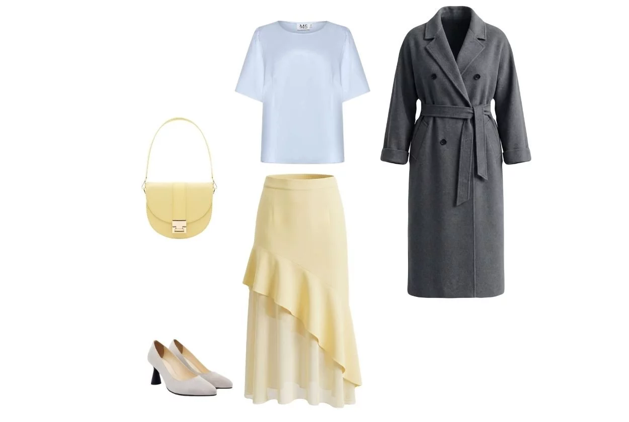 Этот микс доказывает, что желтый можно носить не только летом, но и ранней весной. В паре с графитом и шоколадом он становится благородным.