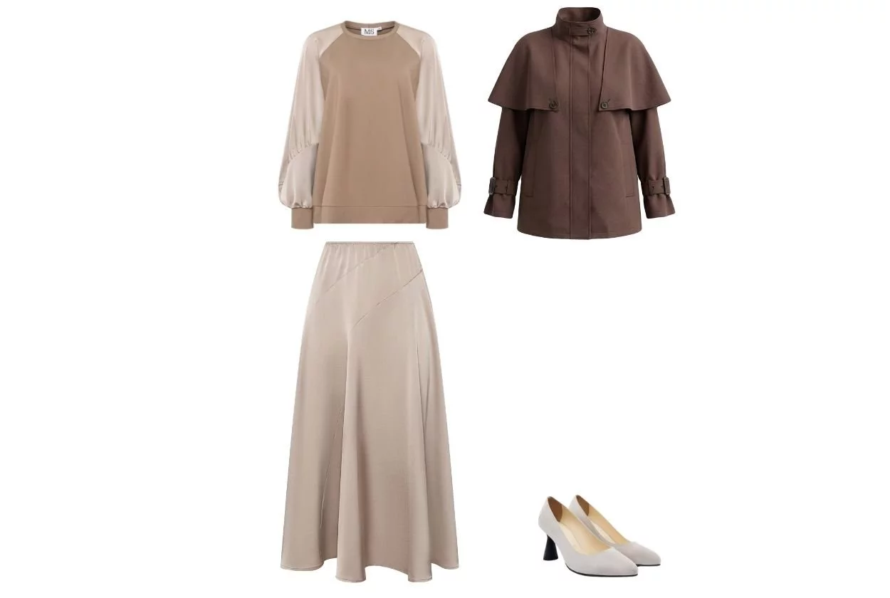 Как собрать: свитшот + юбка + тренч. Обувь подберите в тон наряду.