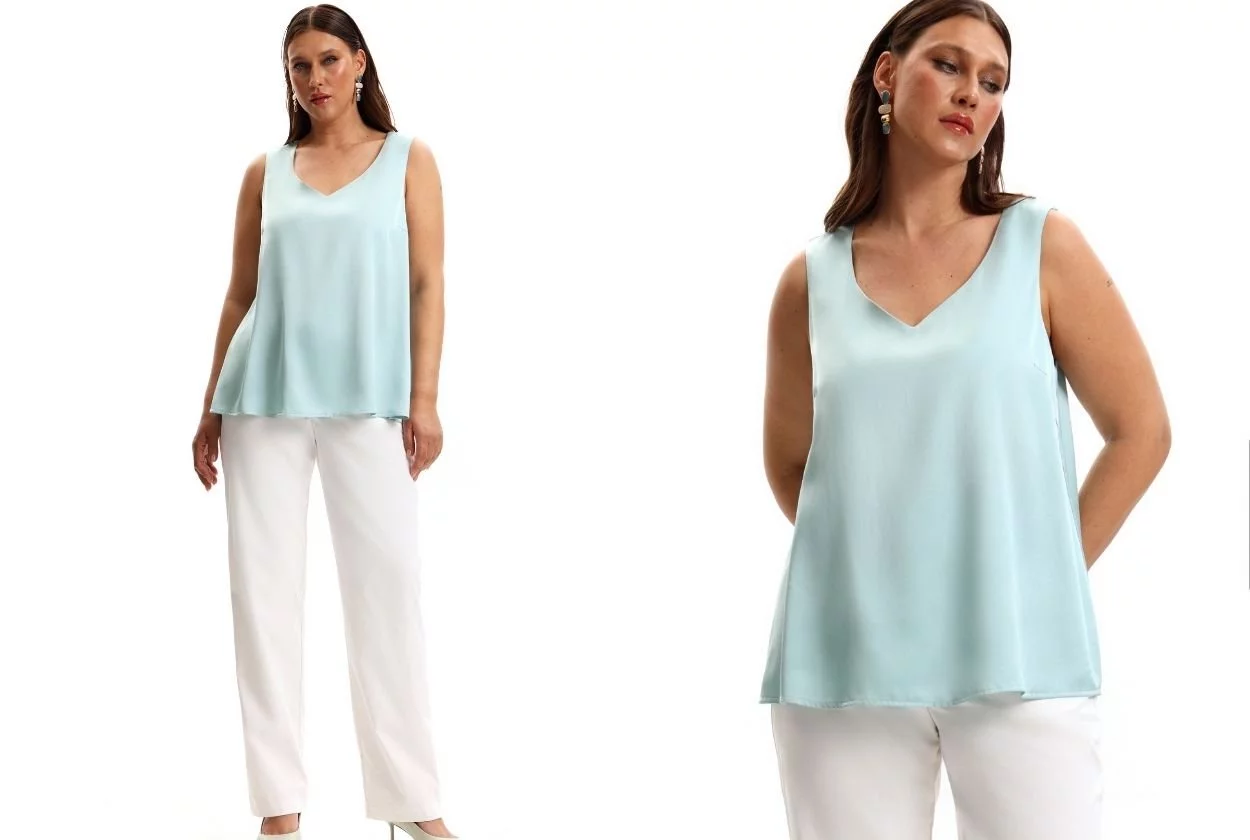 База, без которой лето не лето. В коллекции появились полупрозрачные блузы из тончайшего тенселя и поливискозы. Заманчивая, но корректная прозрачность, мягкий блеск, фактурные детали — для тех дней, когда хочется и базы, и нарядности. Топы и майки составят основу под пиджак или станут самостоятельным атрибутом в теплые дни. Игра фактур здесь тоже заметна: рядом с матовым хлопком соседствует струящийся вискозный шелк, а невесомость соседствует с формой.