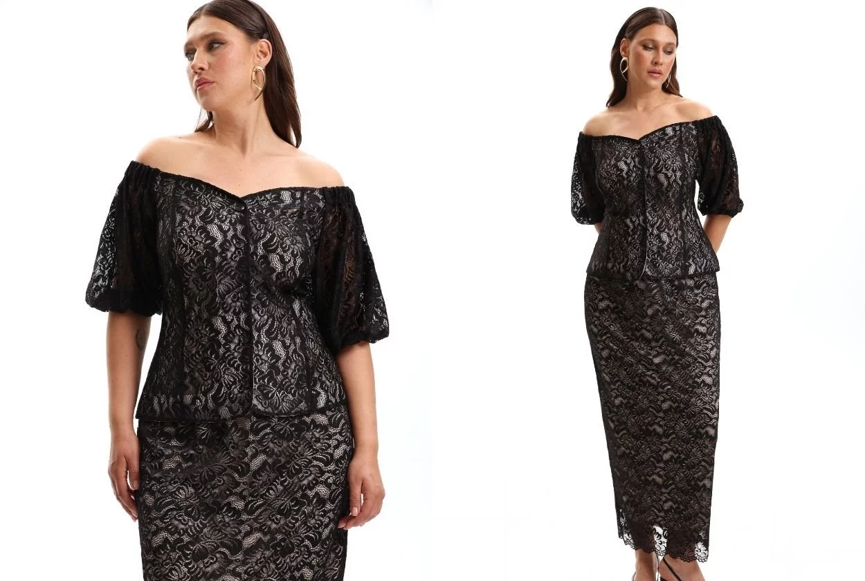 Капсула «Свечение» появилась как раз вовремя: начинается пора выпускных, корпоративов, летних торжеств. Для особых моментов в коллекции есть комплекты, которые трудно обойти стороной. Легкие ткани костюма с юбкой в нашумевшем оттенке мята или вариант с черным кружевом и деликатным декором — рекомендуем рассмотреть оба варианта.
