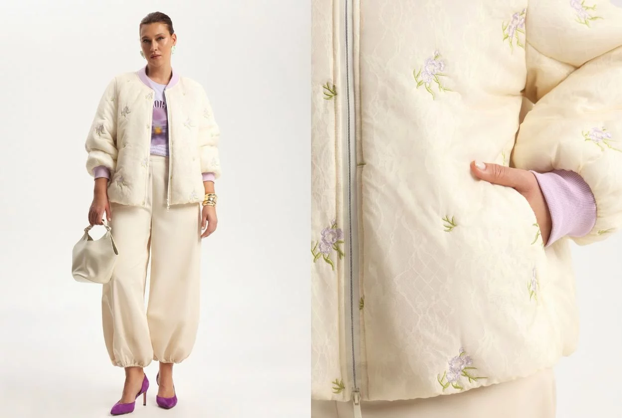 Стеганый многослойный бомбер с вышивкой