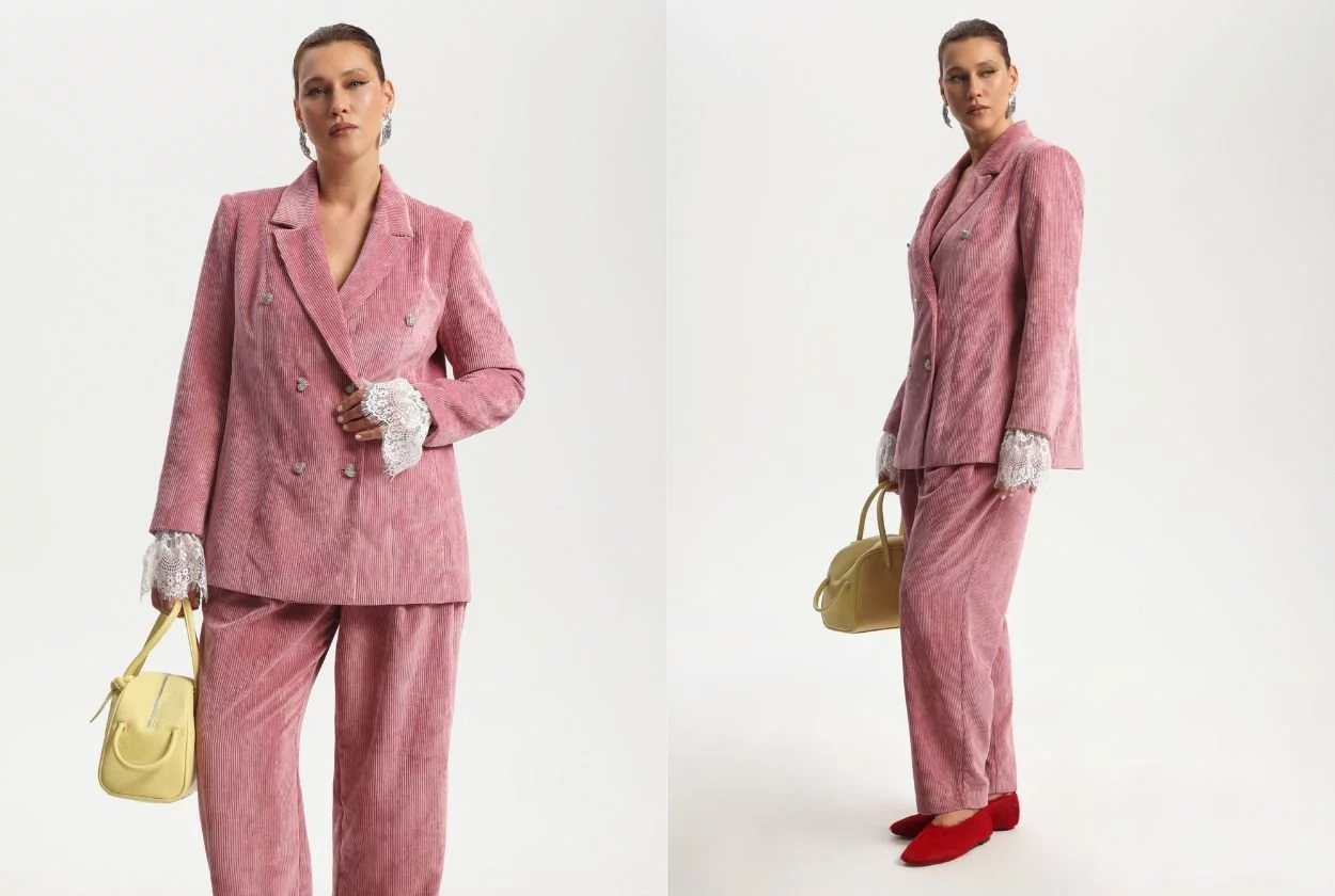 - Вельвет: король внесезонья. Забудьте о его зимних ассоциациях. Этой весной вельвет становится весенним must-have. Его мягкий, матовый отблеск и фактура идеальны для расслабленных костюмов. Он создает ощущение защищенности и безупречного комфорта с легкой дымкой гламура.