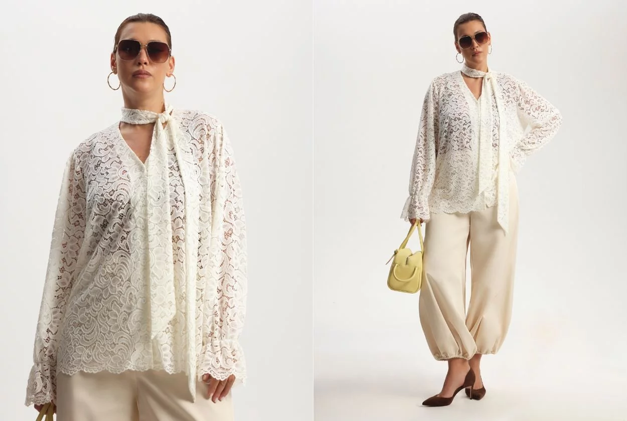Блузка с бантом лавальер из кружева