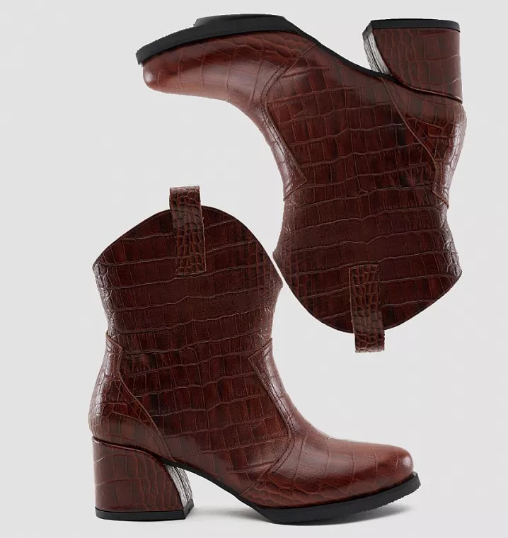 Кожаные казаки с эффектом рептилии коричневого цвета