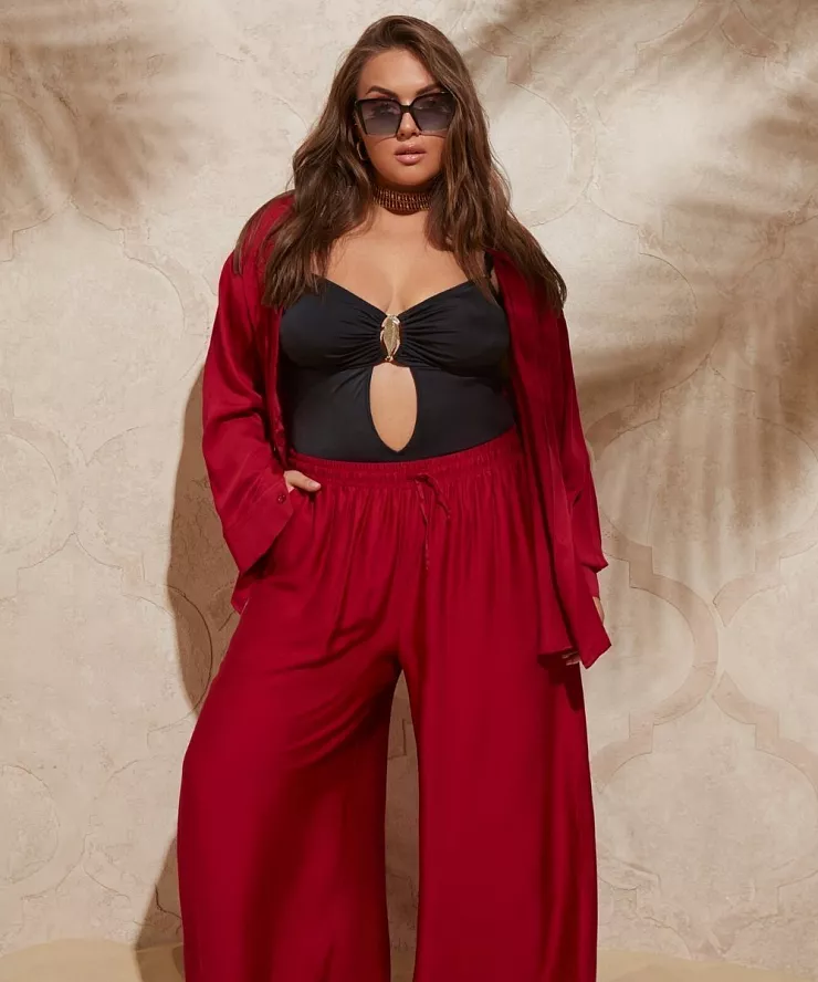 Бордовые палаццо в инди-стиле c посадкой high-wasted rise
