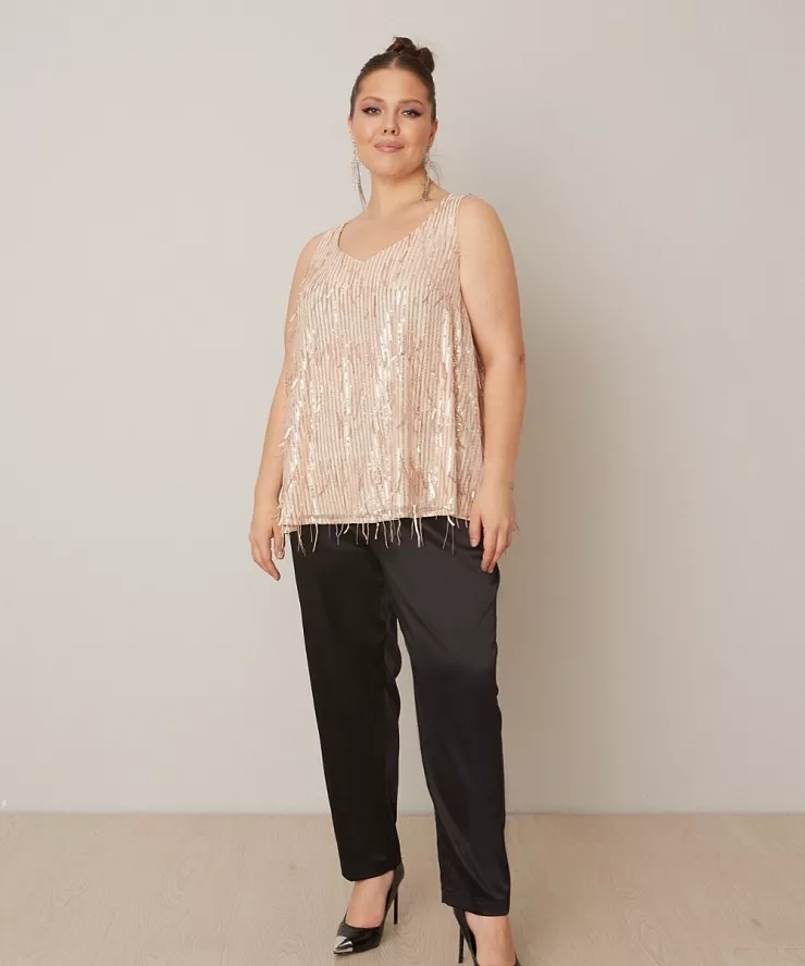 Большой популярностью пользуются широкие брюки палаццо. Они скрывают неровности и другие особенности фигуры, вытягивают и стройнят силуэт. К таким брюкам подойдут и блузки, и жакеты, и рубашки всех фасонов.