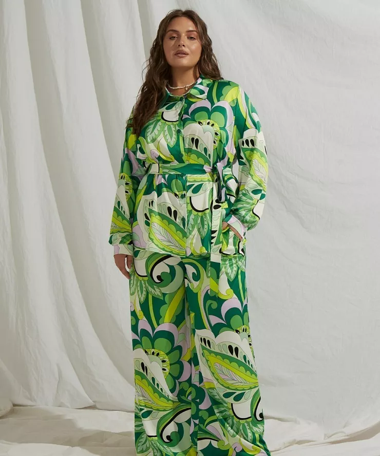 Шелковый костюм в пижамном стиле с принтом