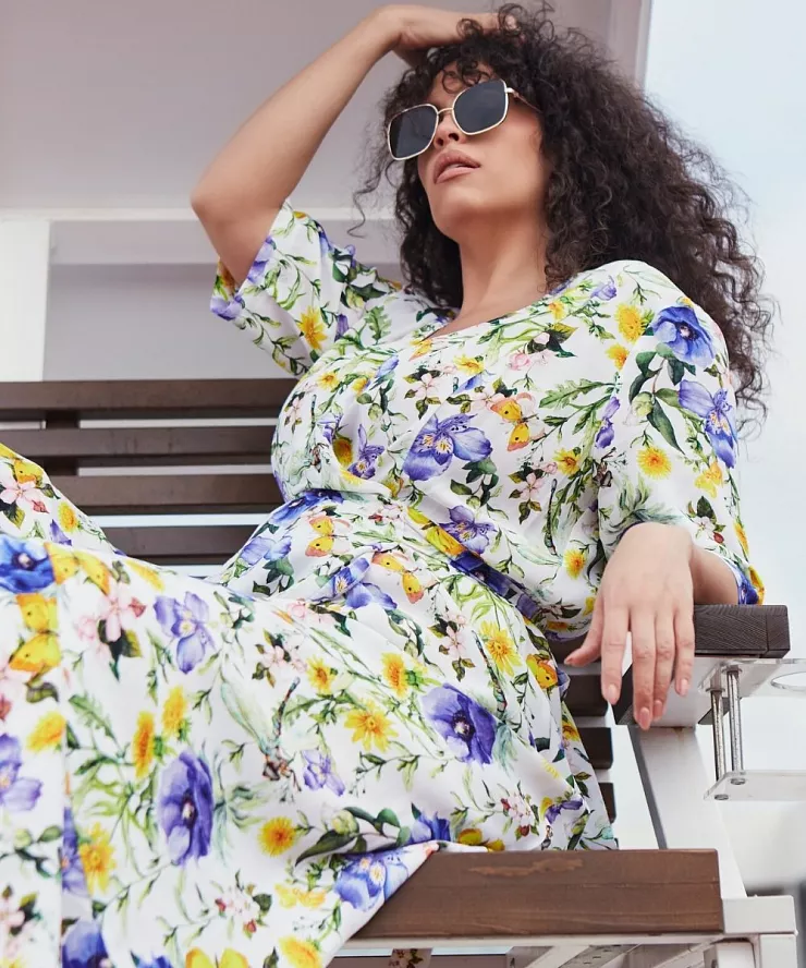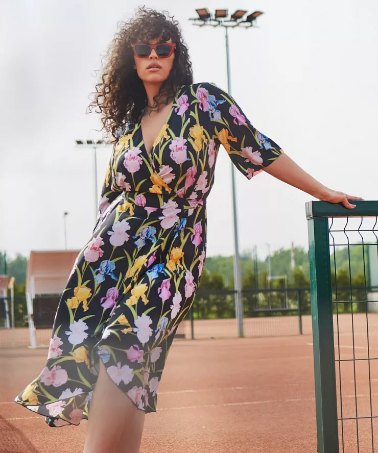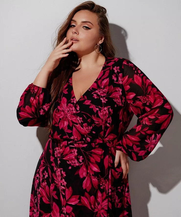 Платье с эффектом запа́ха и растительным принтом