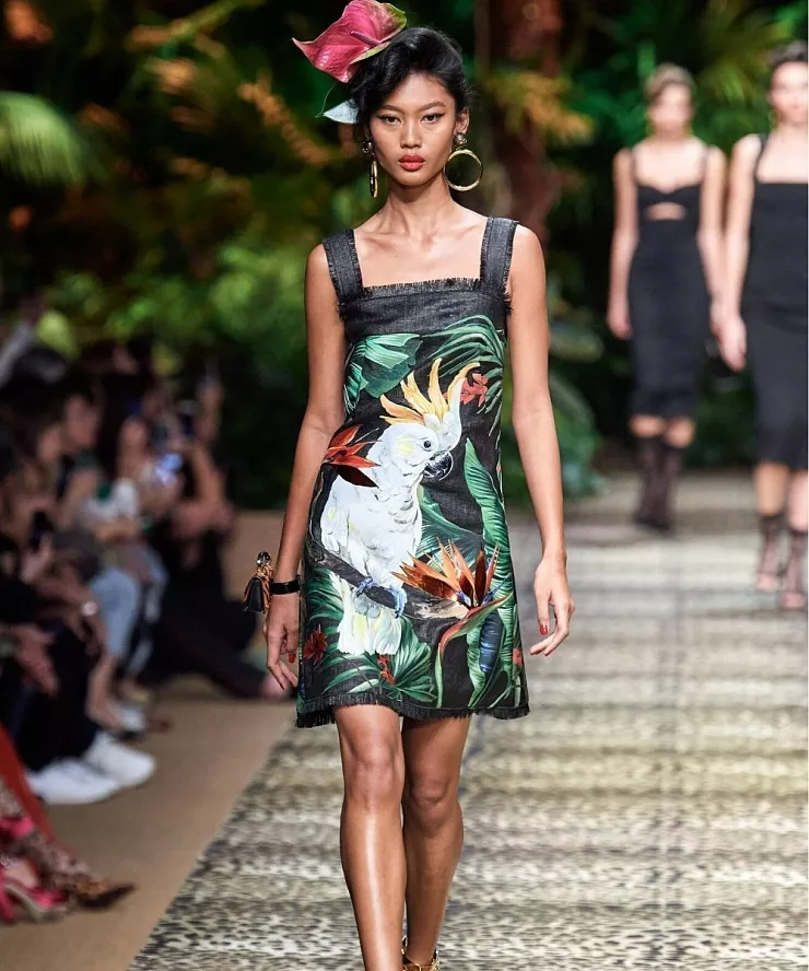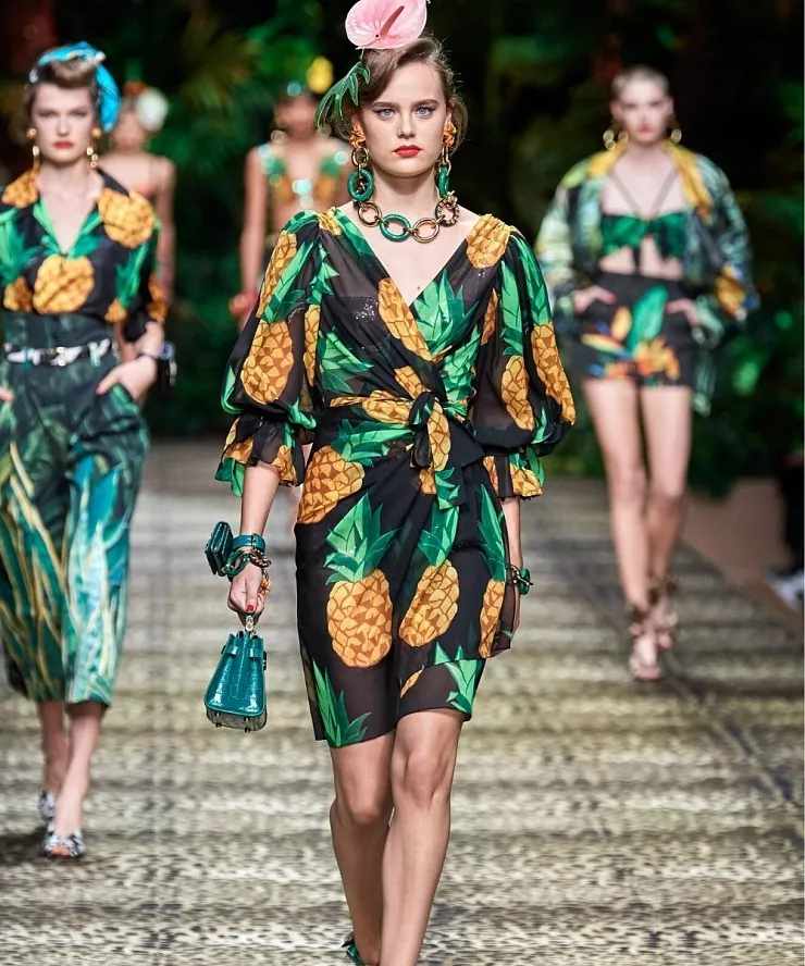 Цветы, листья, экзотика – это все про принт La Isla Bonita. Идеальный принт лета! Особенно символично, если вы летите отдыхать на красивый остров. Принту характерны тропические мотивы, яркие цвета или палитра от нежно-желтых до зеленых оттенков. Здесь важно не переборщить с деталями, выбирать не акцентные, а более лаконичные аксессуары и обувь.