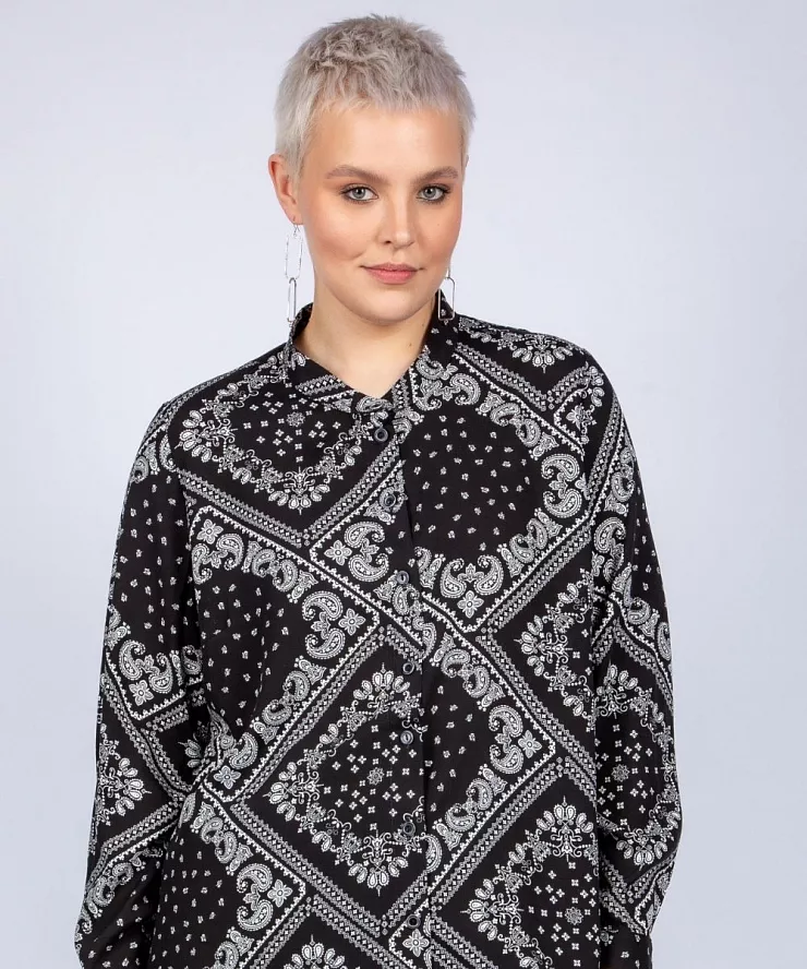 Рубашка черного цвета из хлопка с белым принтом